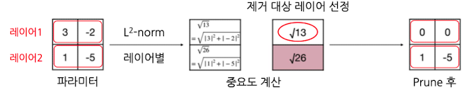 중요도 선정 → “$L^2$-norm”이 작은 순으로 pruning 순서 결정
