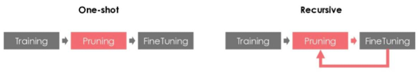 - Pruning 및 fine-tuning을 언제, 얼마나 할 것인지 설정에 따른 분류