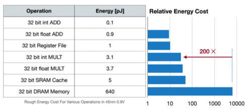 - 메모리 저장 및 유지에 사용되는 에너지(32bit DRAM Memory - 640pJ)가 압도적으로 높다는 것을 알 수 있음