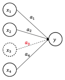 - 단순 신경망 모델 : $y = a_1x_1 + a_2x_2 + a_3x_3 + a_4x_4$