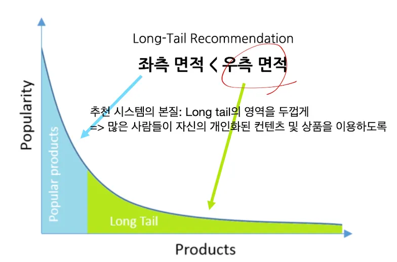 - Long Tail Phenomenon: 아주 다양한 아이템이 Long Tail 형태로 분포