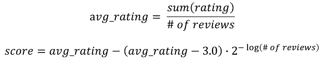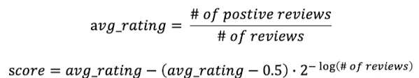 - review 갯수가 아주 많을 경우 → score는 평균 rating과 거의 유사(Second term이 0으로 수렴)
