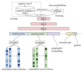 - 유저(user vector)를 input으로 하여 상위 N개 비디오 추출